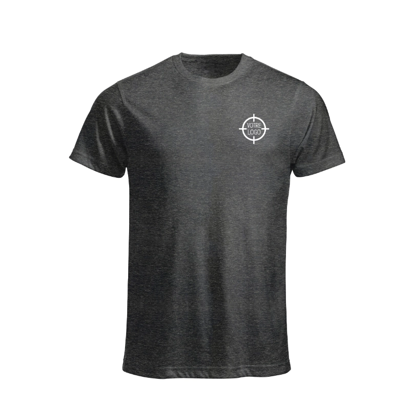 T-shirt pour homme, encolure ras le cou et manches courtes, col en bord côtes mixte spandex de 1,5 cm avec couture rabattue sur